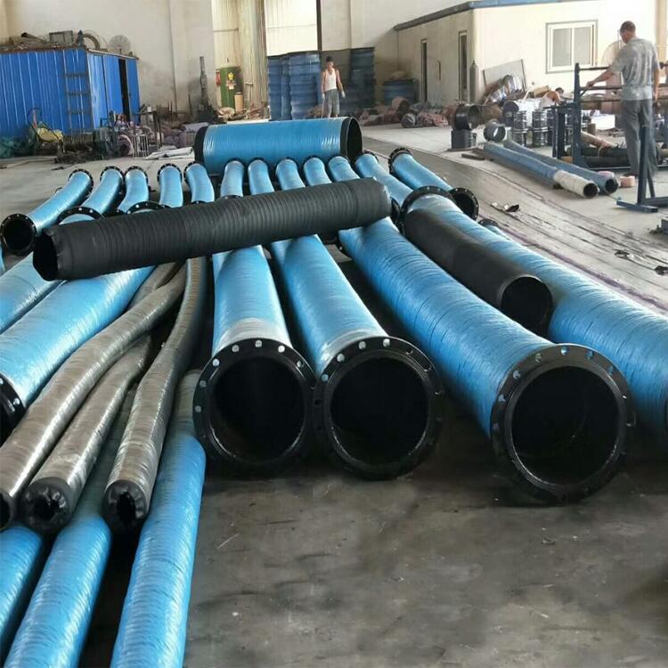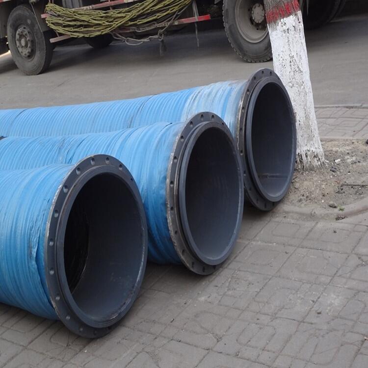 大口径胶管的内胶层直接承受输送介质的磨损、侵蚀,且防止其泄漏;钢丝骨架排吸胶管外胶层保护骨架层不受外界的损伤和侵蚀;骨架层是胶管的承压层,赋予管体强度和刚度。
