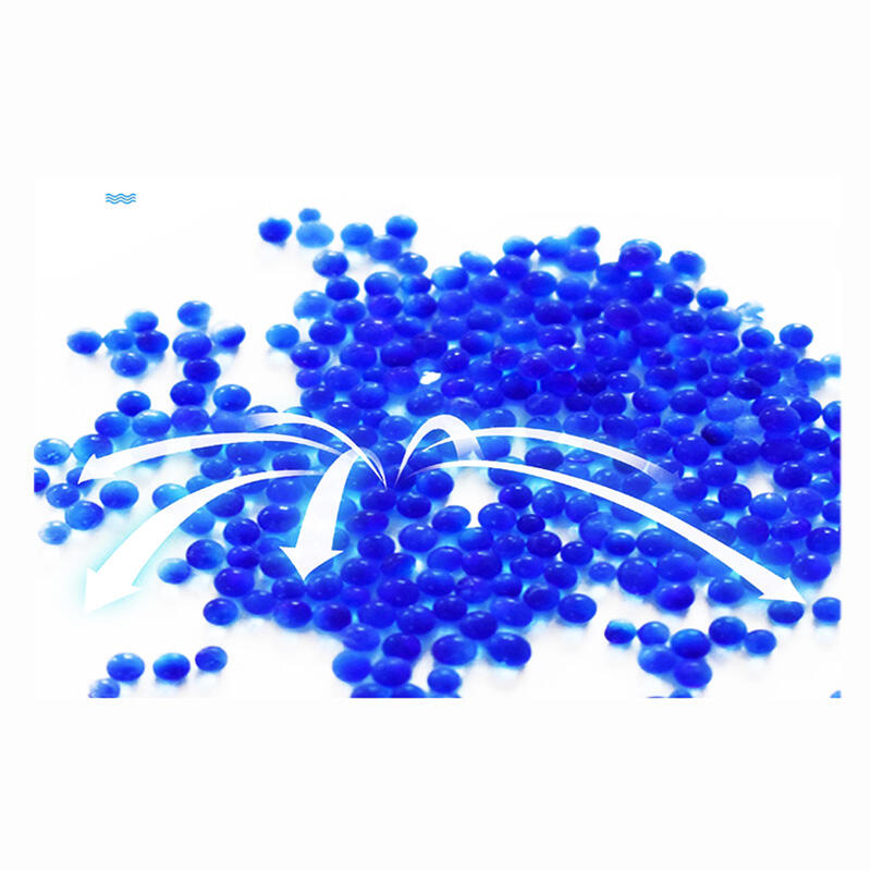 变色硅胶干燥剂外观为蓝色颗粒,具有吸湿后自身颜色由蓝色变红色的特性,其主要成分为二氧化硅,颜色随湿度不同而变化。蓝色变色硅胶干燥剂对空气中的水蒸气有极强的吸附作用,同时又能通过所含氯化钴结晶水数量变化而显示不同的颜色,即由吸湿前的蓝色随吸湿量的增加逐渐转变成浅红色。