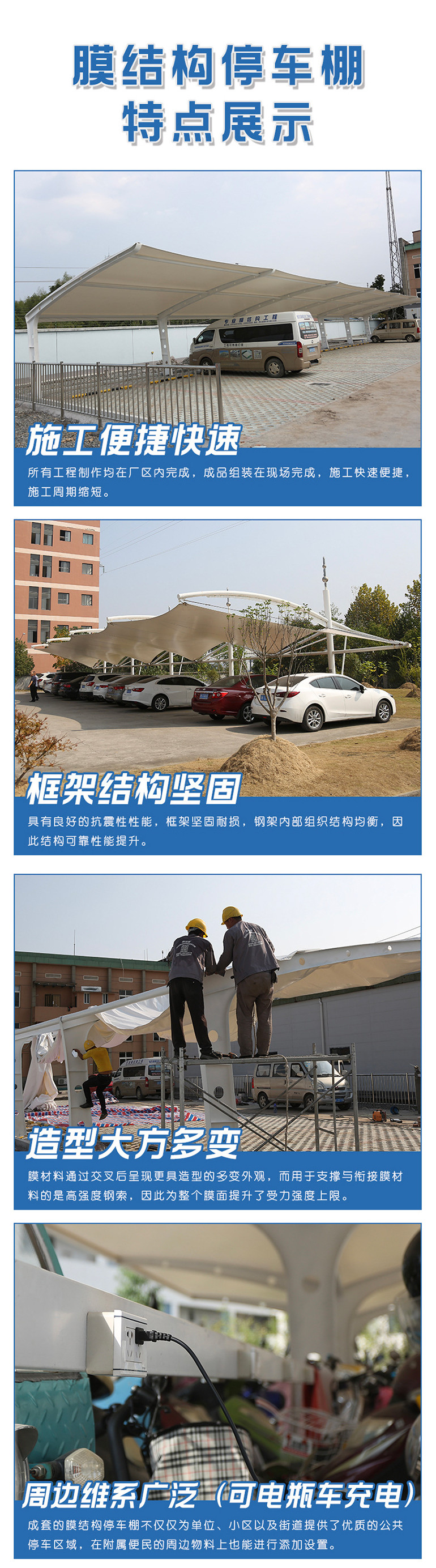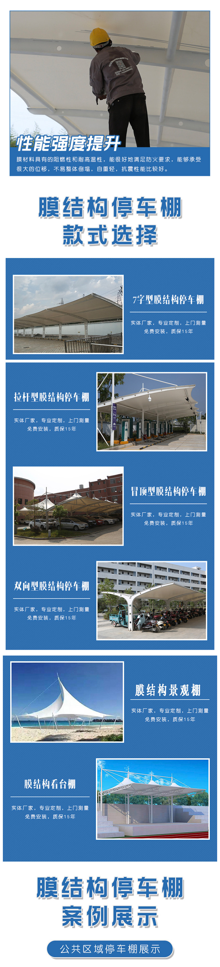 主营业务 | 膜结构汽车棚、停车棚 充电桩雨棚、张拉膜景观棚等 | ||