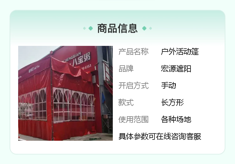 宏源遮阳拱弧型防水遮阳耐寒保暖篷多人户外防雨防晒活动帐篷