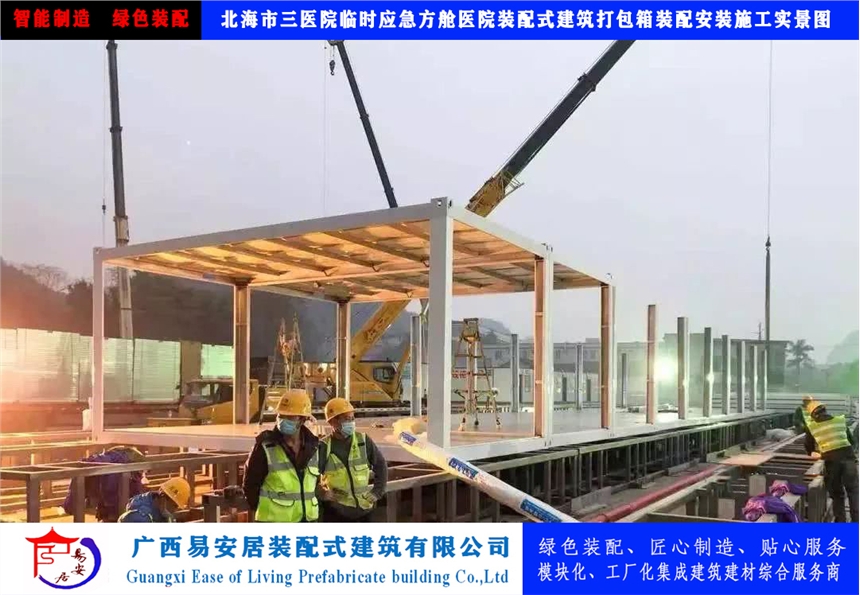 广西易安居装配式建筑有限公司先后参与了国内外方舱医院建设,生产制迼供应模块单元主体,各个模块化系统既可单独使用,也可无缝连接组建成大规模移动医院。实现既可以共享方舱内的设备资源,又便于对伤病员进行快速、高效处置。