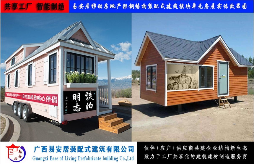 广西易安居装配式建筑有限公司研发制造的移动房车型集成房屋已实现工厂化、标准化、模块化、智能化设计制造。广泛地用于旅游景区、旅游城镇、移动露营客栈、移动乡村别墅、移动农场公寓外,还可以根据大型体育赛事、大型庆祝活动的自身特点和需求配备移动房车型集成房屋。公司采用开放的空间及可利用的基础设施,利用装配式建筑特有建筑元素,诠释了移动酒店零排污、全生态的空间概念。公司系列产品设计新颖、简明美观,建设快,易维护,可循环使用,可量身定制,功能适用,拆装自由,运输方便,可随意变更地点,且模块单元自由组合,坚固耐用,密封性能好,有很强抗震、抗变形特性。