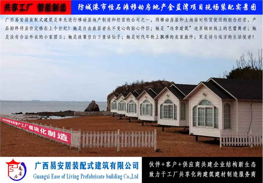 广西易安居装配式建筑是率先进行移动房地产制造和经营的公司之一,将移动房屋和土地临时租赁使用的组合经营,产品1980元起,她始终将房价定格在上个世纪!她是自由旅居者永不变心的贴心伴侣;她是“违章建筑”边界钢丝线上的芭蕾舞者;她是没有合法外衣的小家碧玉;她是政策空白下童话仙子;她是时代年轮上飘移的农家旅伴;更是诗与远方的生活使者!“桂系易安居,春来燕呢喃;移动房地产,轻步柳飞杨;小家碧玉女,不敢登高堂;起坐仙子影,月下织罗帐;琵琶半遮面,小调诉衷肠。变幻追随客,裙带做篱栏;年年风水地,夜夜百草香;千里乔迁居,半日进新房”。