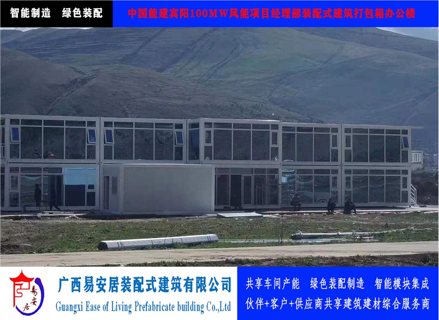 广西易安居装配式建筑有限公司生产的易安居打包箱、快拼箱集成房屋采用标准化设计,工厂化生产,模块化组合,菜单式选择,风格变化自由。且环保节能,安装快速,拆装方便,性能优越,稳定牢固,抗台风、防震性能好,防水防火防腐,重量轻,可重复利用。房屋为整体结构,内有框架,墙体为钢板,可用木板饰面,可整体迁移,使用寿命可达30年以上。