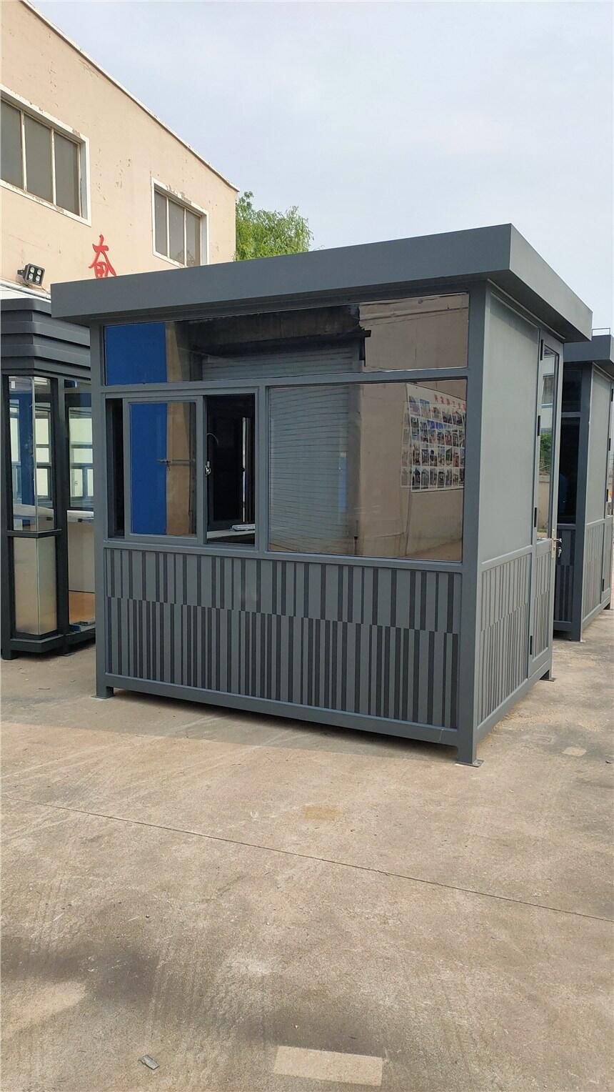 以1.2×1.5×2.4m或1.5×1.5×2.4m居多,虽然也有更小一点的尺寸(例如:1.2×1.2×2.4m),但是尺寸过小的话,会造成工作人员在岗亭内觉得压抑,不适合长时间留守在岗亭内。