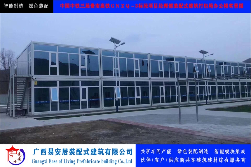 广西易安居装配式建筑有限公司公司采用模数化设计、工厂化生产,以箱体为基本单元,可单独使用,也可通过水平及竖直方向的不同组合形成宽敞的使用空间,竖直方向可以叠层。基本实现了标准化设计,工厂化生产,模块化组合,菜单式选择,风格变化自由。公司研发设计和生产制造的集装箱模块单元实现了智能制造、绿色装配、样式多变、种类齐全、随意组合、外观个性、运输方便、安装快捷、坚固耐用、抗震防噪、拆装灵活、性能优越、使用舒适、防火防水、防潮防风的装配式建筑应有的功能。可量身定制,可整体迁移,可循环利用,使用寿命可达30年以上。