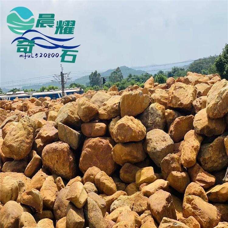 景观黄腊石石质优,形状佳美,而且价格实惠,应用于公司、工厂、厂房、学校、旅游景区、工业园、科技园、古建筑、房地产、酒店、别墅、家居、市政道路作为招牌刻字石、园林景观点缀石。