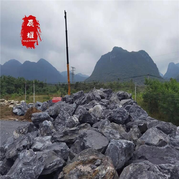 黑山石枯山水造景 园林景观奇石 假山水池驳岸