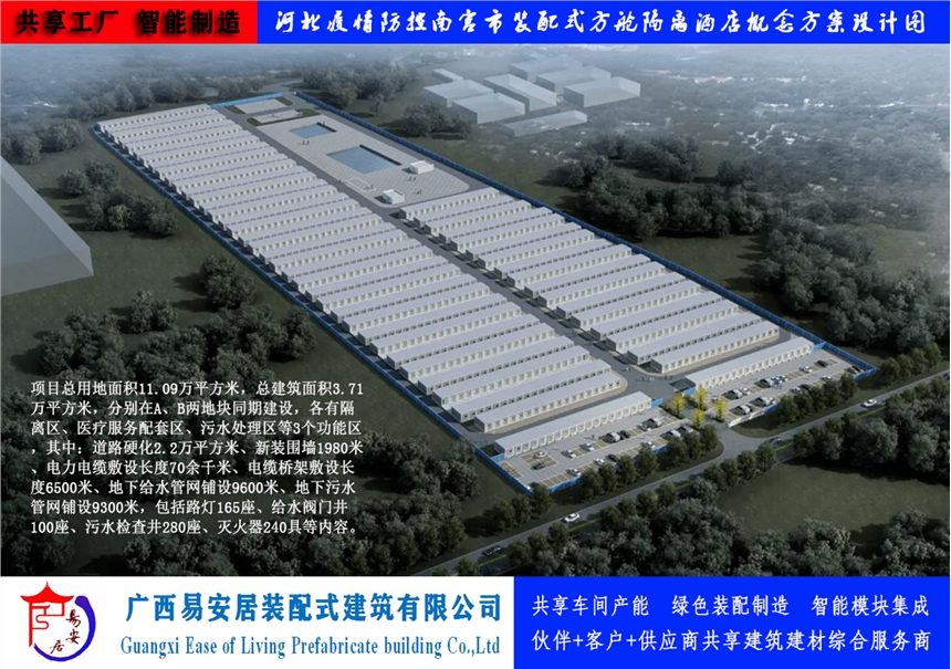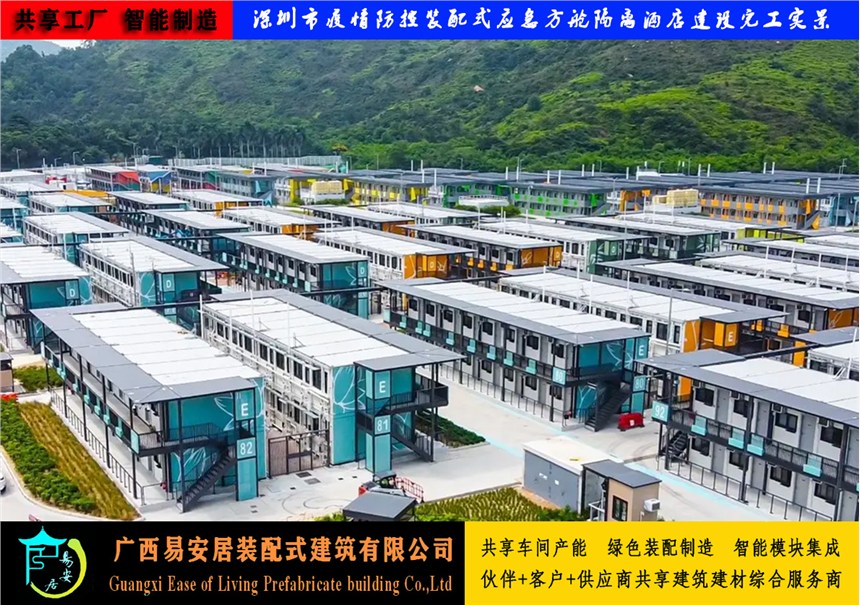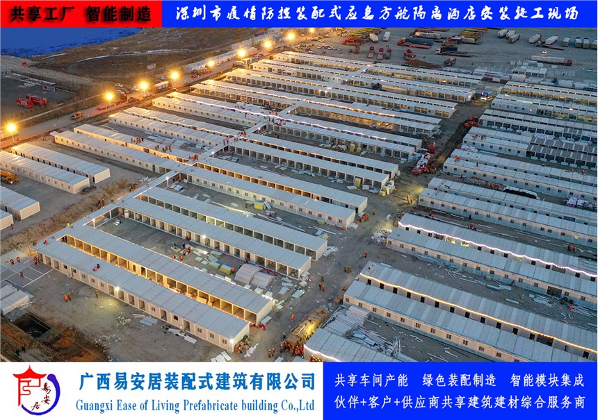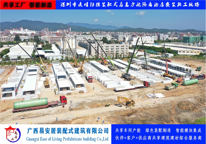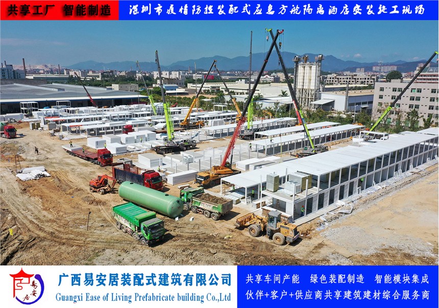 广西易安居装配式建筑有限公司先后参与了临时应急隔离方舱酒店建设,生产制迼供应模块单元主体,各个模块化系统既可单独使用,也可无缝连接组建成大规模移动医院。实现既可以共享方舱内的设备资源。