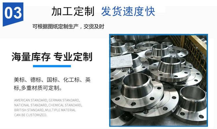 平焊法兰包括板式平焊法兰、带颈平焊法兰。平焊法兰适用于公称压力不超过2.5MPa的钢管道连接.平焊法兰的密封面可以制成光滑式,凹凸式和榫槽式三种.光滑式平焊法兰的应用量 大.多用于介质条件比较缓和的情况下,如低压非净化压缩空气、低压循环水。带颈平焊法兰颈部高度较低,对法兰的刚度、承载能力有所提高。与对焊法兰相比,焊接工作量大,焊条耗量高,经不起高温高压及反复弯曲和温度波动,但现场安装较方便,可省略焊缝拍揉伤的工序,较受欢迎。