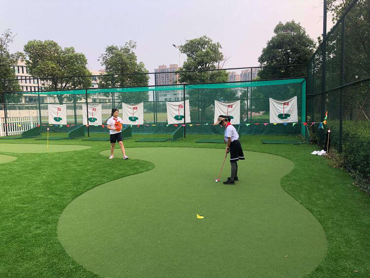 校园高尔夫”是指让高尔夫球运动走进学校,旨在帮助青少年学生学习和掌握一项可以陪伴终身的体育技能。致力于培养学生的全面发展,校园高尔夫项目作为学生的兴趣课开展,让更多孩子认识高尔夫、了解高尔夫,开辟更多全新的领域。高尔夫进校园活动,不是要让每个孩子成为高尔夫选手,而是希望孩子借助这个课程习得礼仪、掌握技能、陶冶性情,构筑自我。 校园高尔夫分几个区块:高尔夫挥杆训练区、高尔夫人工果岭推杆训练区、体能综合训练区、高尔夫历史文化展览区,供学生们学习和训练。