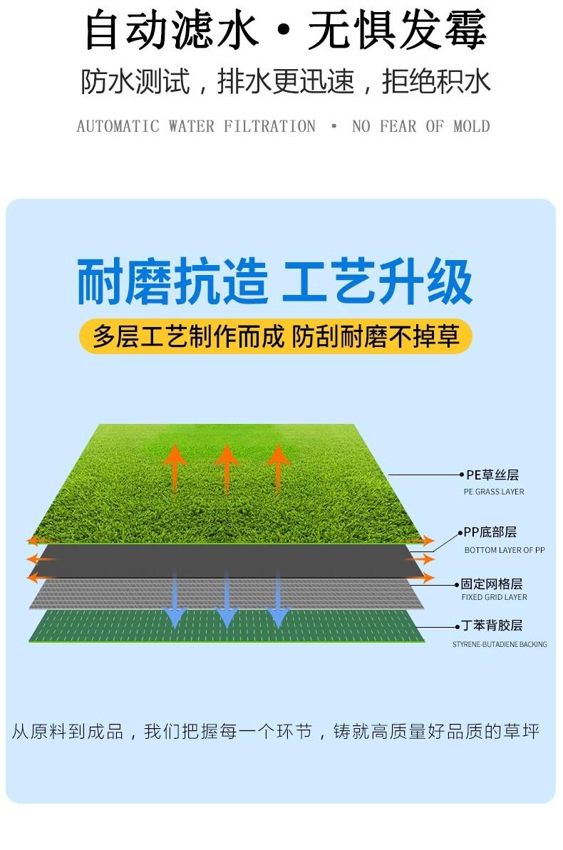 3. 运动场地:仿真草坪适用于运动场地,如足球场、高尔夫球场等。它具有良好的抗冲击性和减震性,为运动员提供更安全、舒适的场地。
