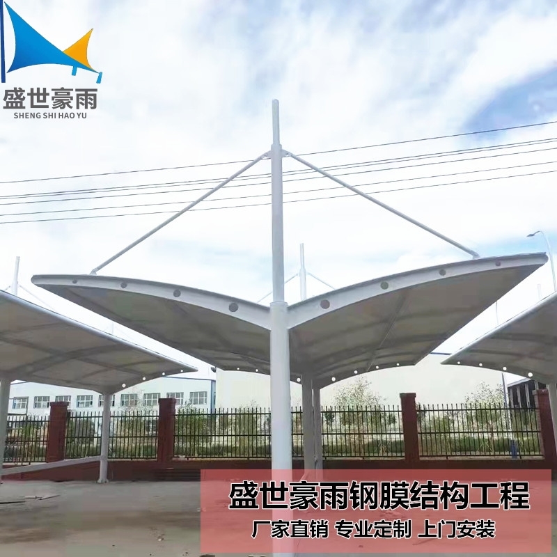 乌鲁木齐汽车充电桩车棚安装 张拉膜停车棚图纸设计 PVDF 膜材批发