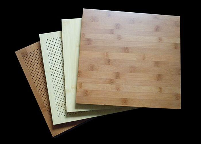 竹皮铝蜂窝板采用特殊工艺将0.5mm的竹皮与铝蜂窝板复合,其强度高,同时具备很好的平整度。竹皮铝蜂窝板拥有竹材天然装饰质感的同时不会对人体和环境产生任何危害,且可回收利用。其防火等级达可达A2级,作为公共场所常用的建筑装饰材料保证其使用安全。竹皮铝蜂窝板可加工成表面微孔状并配以吸音纸达到良好的吸声降噪效果。
