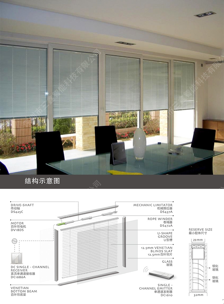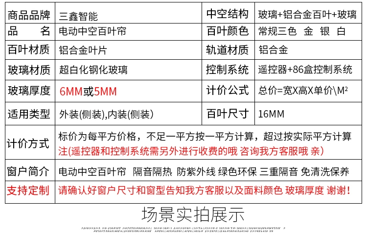 电动中空百叶帘遮光防晒隔音隔断玻璃铝合金内置百叶帘