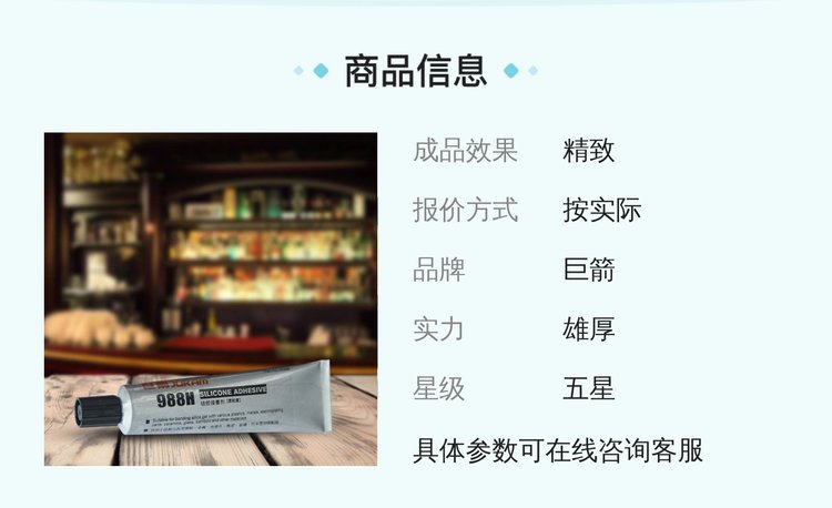 巨箭牌988硅胶粘接高粘性环保胶水精致成品效果五星服务保障