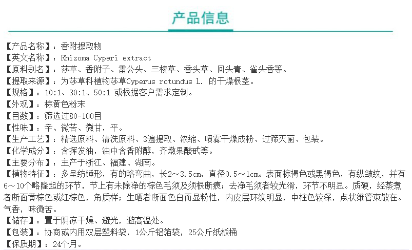 香附提取物30:1/50:1水溶香附子粉香附子浓缩粉 资质全比例萃取 商品名称 | 香附子提取物 | ||