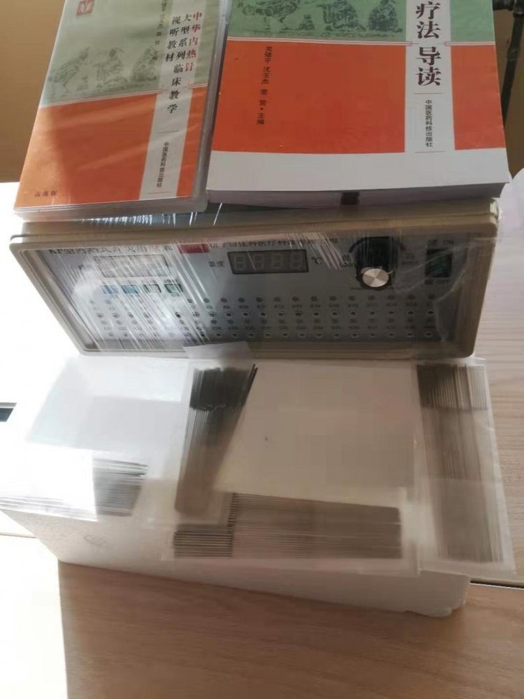 内热式针灸仪:整套设备由内热式银质针加热仪、内热针连接线和内热针三部分组成,内热式针灸仪主要是内热针的供能设备,该设备能够同时提供20、30、40支内热针的稳定能量,同时以数字形式显示,并能在38℃~60℃的范围内调节控制,内热式针灸仪主要按常规把针体的发热温度设置在38℃~60℃之间,进行无级调控温度,以保持所需要的恒定温度。和设备配套的内热针是特制的专用针具,外观是由电极、针柄和针体组成,采用低电压,微电流工作。内热针内部安置了电致热微细发热管芯,是全封闭的结构,该结构不怕浸泡,耐高温(250℃),保证了高温高压消毒的安全性,内热针通过控制微细发热管芯,使针具内部产生红外热能,由于红外热能集中在针体的下3/5—4/5部位,内热针工作时,针体通道周围直径1—1.8cm范围的环境中,温度稳定地保持在40—60℃左右。