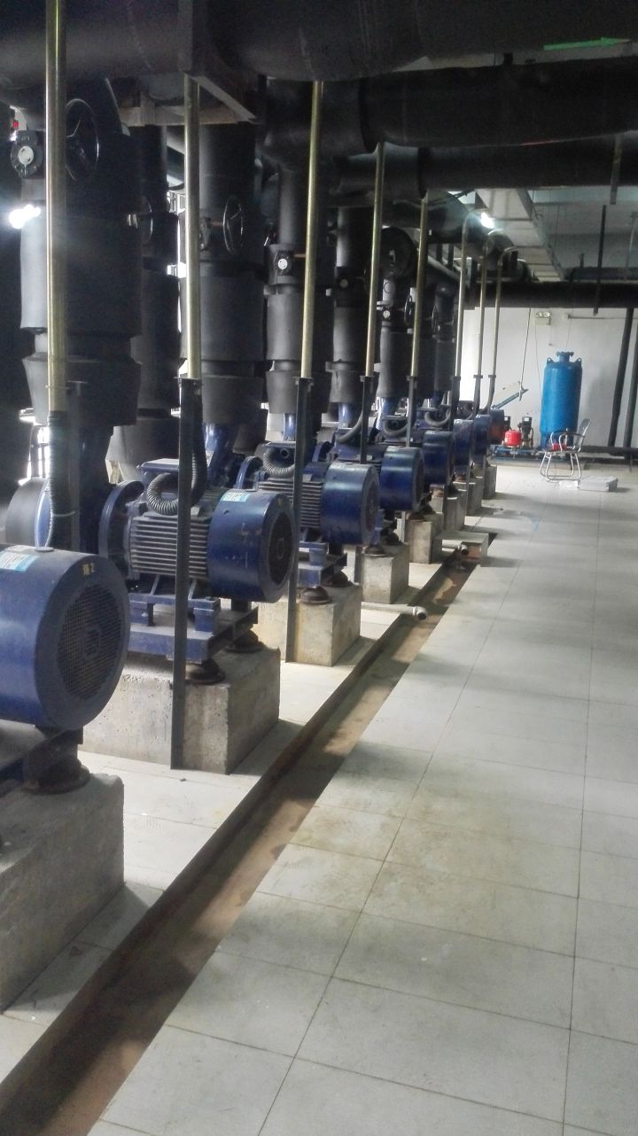 2、冷却水系统:是通过循环水泵把冷水机组冷凝器中的高温水送到冷却塔中进行冷却后又回到冷水机组冷凝器中。这样一个运送冷却循环水系统。