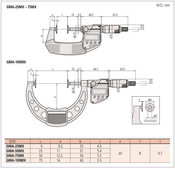 4、带有基点调整用量杆 ( 不包括测量范围 0-25mm 型 ) 。