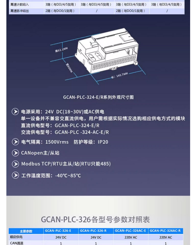 PLC支持通讯模式 | CANopen/MODBUS主从站通讯 | ||