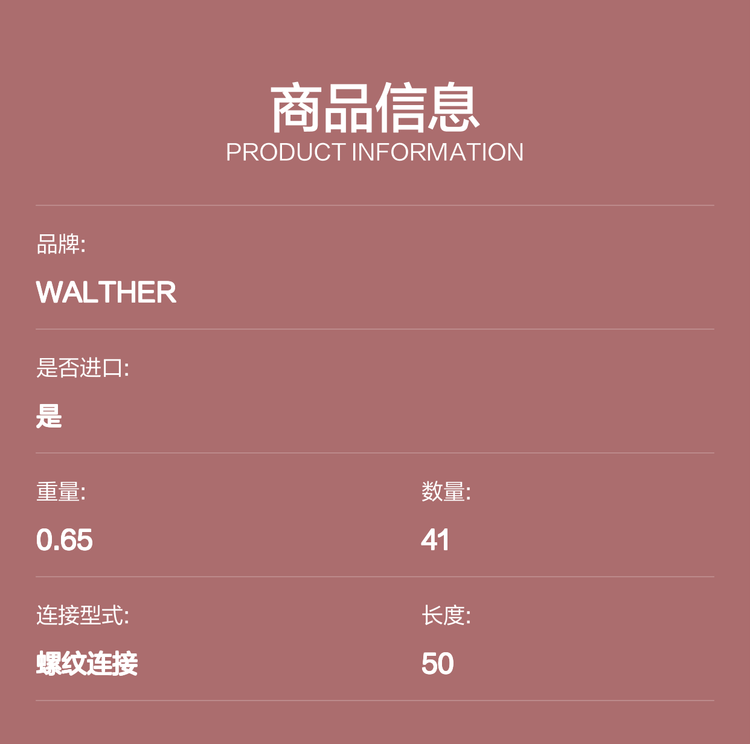 商品核心词 | WALTHER 原装进口 接头CT-019-0-WR526-02-4-FD 3/4 | ||