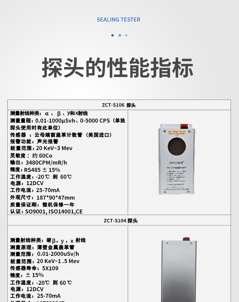 ■各探头具有两种报警模式 (上限报警/下限报警),灵活适用于各种辐射安全报警场所。