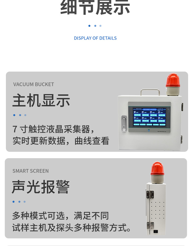 ■主机显示:7 寸触控液晶采集器,实时更新数据,曲线查看,报警记录查看等,具有易于上手、操作简便等特性。
