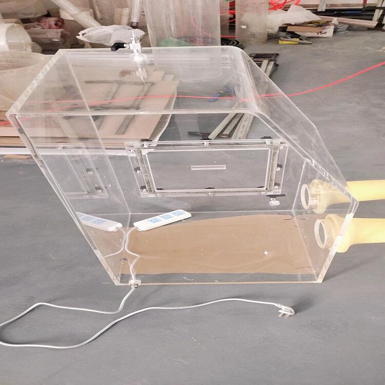 实验透明手套箱特点:可以根据客户需要为客户订做加工各种规格型号的透明材质手套箱,真空箱,厌氧箱,试验箱,培养箱等密封试验操作箱体和天平罩,仪器罩等设备和实验器材实验装置。