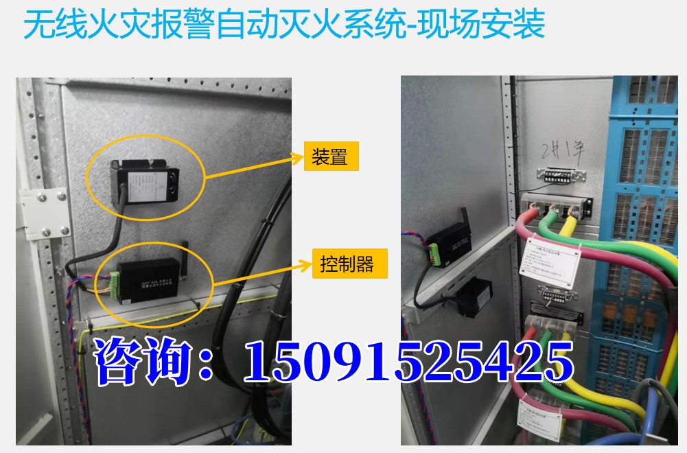 电气火灾自动灭火系统具备精确灭火优势,需在每台低压配电柜中安装自动报警灭火控制器及自动灭火装置,通过本身内部集成的温度探测模块 和烟雾探测模块实时检测每一台开关柜内火灾隐患信号,以温度和烟雾两种增量逻辑判断电气火灾情况,并通过无线模块将火灾信息传送出去。