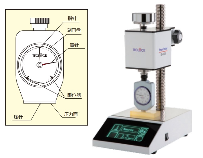 这是一标准型检查橡胶硬度计弹簧荷重值的检查器 , 依标准检查橡胶硬度计25, 50, 75三个度数的刻度值是否精准,因每一家的设计结构不同,只能适用在TECLOCK品牌的指针型硬度计。(不能用来检查数显型)