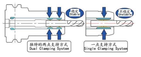 装爽孔内壁和被爽刀具之间产生的巨大压力将油,油脂等等润滑物的残余部分排挤到环槽内,保持了装夹孔壁的清洁和干燥。
