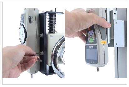 您可以将测力计握在手中进行简单测量,也可以将其连接到测量支架上并将其用作简单的负载测试仪。