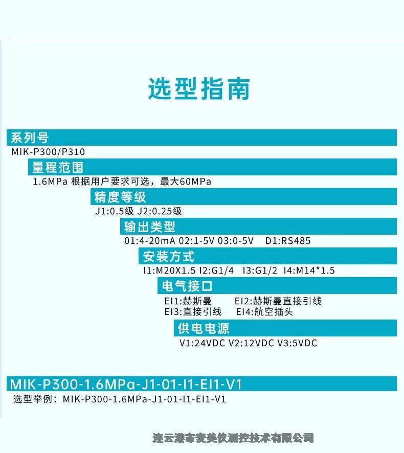 米科MIK-P300压力变送器4~20mA扩散硅压力传感器