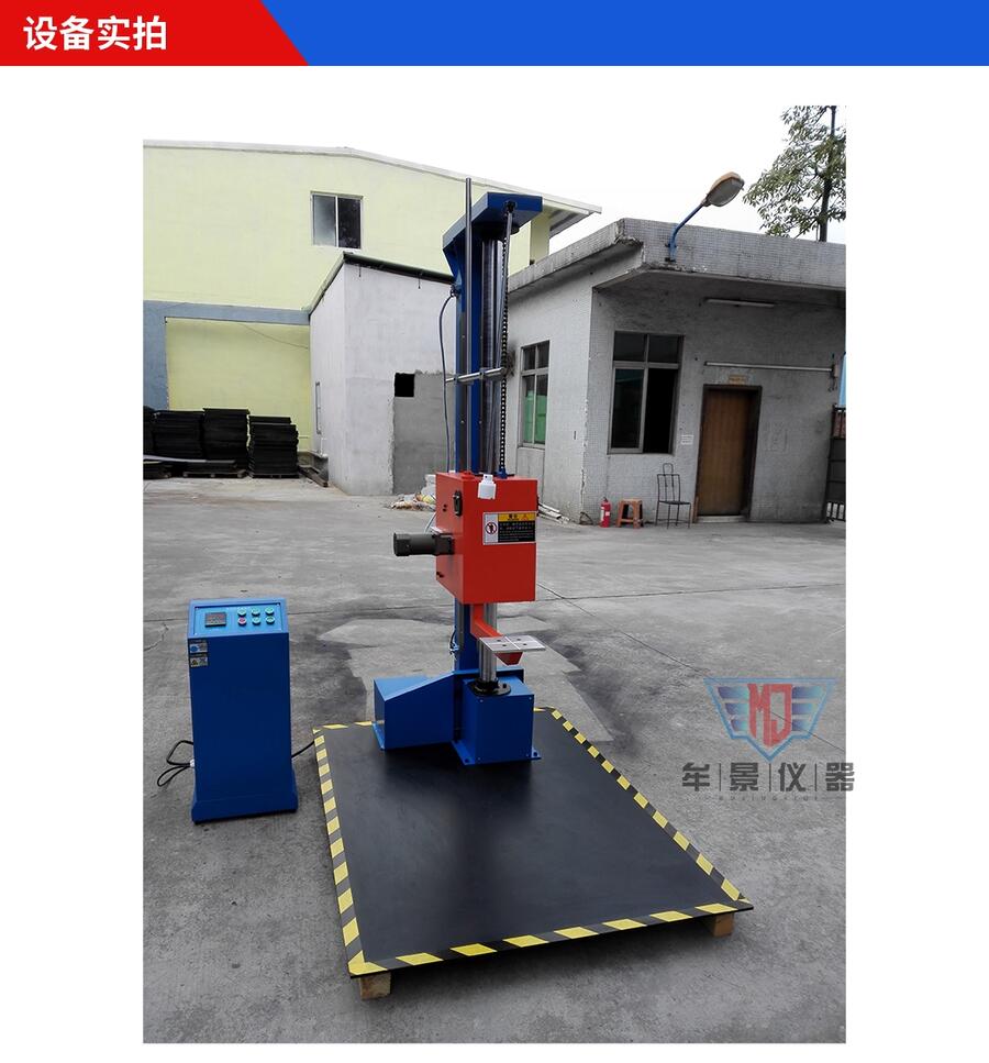 本机可对包装件的面、角、棱作自由跌落试验,配备数显高度显示仪及采用译码器进行高度跟踪,从而能精确地给出产品跌落高度,与预设跌落高度误差不超过2%或10MM。本机采用单臂双柱结构,具有电动复位、电控跌落及电动升降装置,使用方便;独有的液压缓冲装置大大的提高了机器使用寿命、平稳性及安全性。单臂设置,可方便地放置产品,跌落角度冲击面与底板平面角度误差小于等于50。