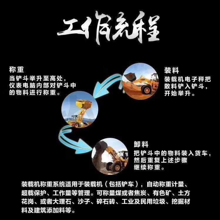装载机铲车电子秤主要由液压传感器,位置传感器,显示仪表等三部分组成,使用12V电池作为电源,精度高,使用方便,适用于货场,码头工厂等何种需要称重地方。电源使用装载机本身自身电源,不破坏装载机本身结构,对电池没有危害