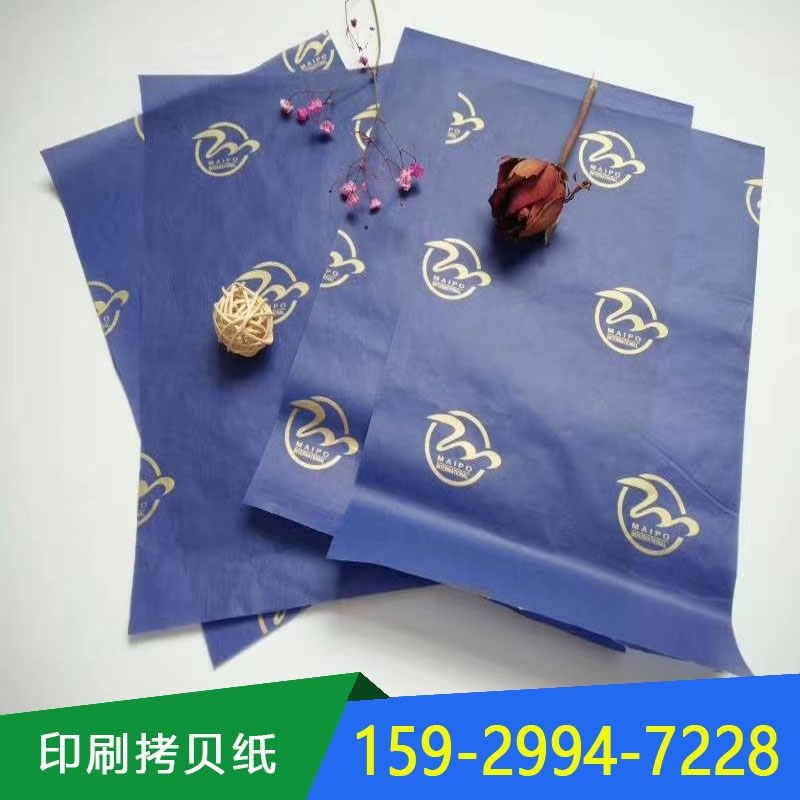拷贝纸可印刷1-6色LOGO、满版底色+1-6色LOGO、各种单双面满版普通颜色或特殊珠光、金银色、荧光色等,客户只需提供设计档案或样品即可安排打样生产,选用优质特级纸质印刷,效果精美,大大提高产品档次,更好的宣传企业品牌。