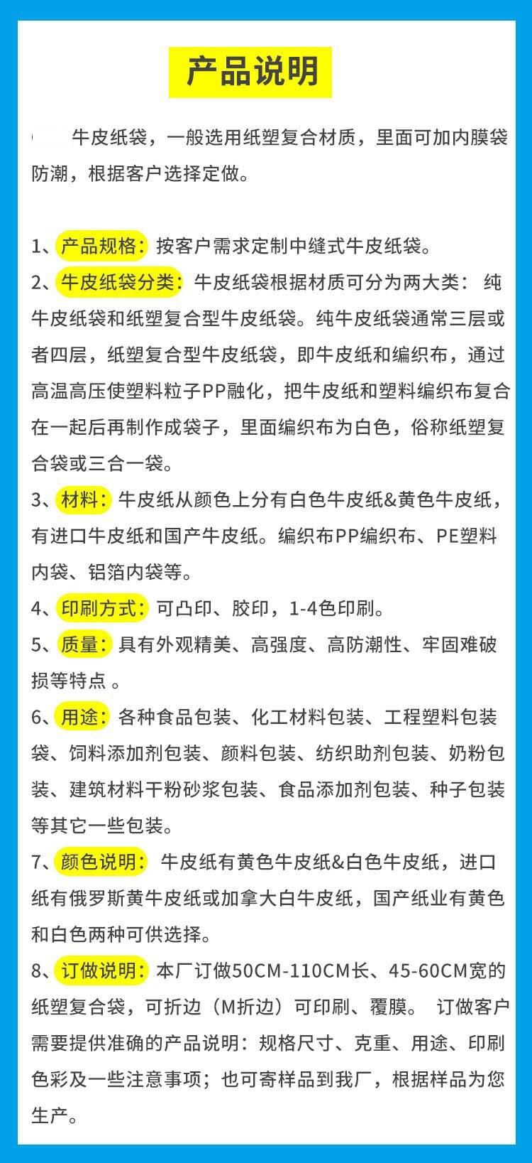 龙口思源塑业有限公司主营各种规格的化工用危包纸塑复合袋,危险品牛皮纸袋,食品级牛皮纸复合袋,出口用多层牛皮纸袋,食品级PE袋,危险品吨袋,UN危包吨袋,导电集装袋,化工危包/食品级编织袋,方底牛皮纸袋,化工铝箔袋,复合布等包装制品,公司位于龙口市新嘉街道办事处驻地,属中美合资企业,拥有多套复合包装袋.多层纸袋生产流水线,具有年生产能力5000万条.公司实行产品材料多样化,适应不同产品包装要求,既符合环保要求又符合欧美等国的出口要求,按食品卫生要求生产,高温抽湿干燥,印刷,外形美观,适合开口型灌包流水线 ,同时公司通过ISO9001:2008国际质量体系认证和食品包装、危险品包装工业产品生产许可证,并严格按该体系标准控制各生产环节的质量.可出具普包、危险品包装、及食品级包装性能检验结果单,满足客户出口需求。