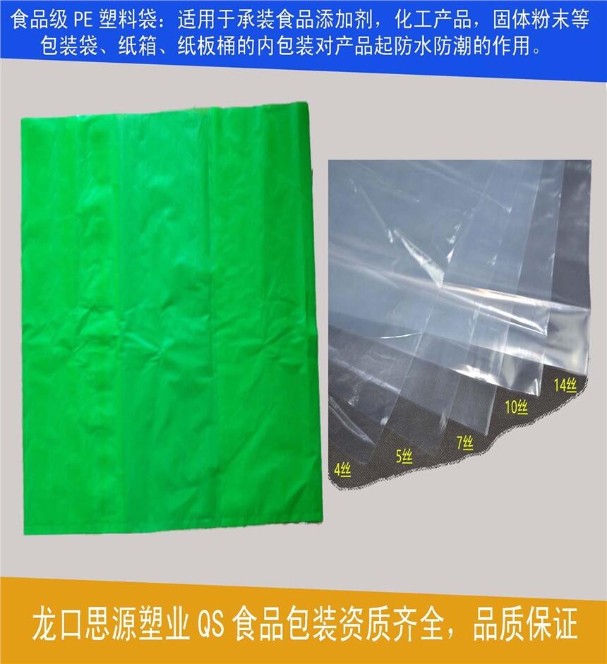 塑料袋颜色分为:透明色、白色、蓝色、黑色,主要有低压或高压两种,低压韧性好半透明,高压较为透明。主要用于25公斤包装袋或吨袋的内衬。产品可适用于包装粉状,粒状,片状,块状物料。如:精细化工,工程塑料,食品添加剂,医用添加剂,干粉建材;饲料添加剂;精细矿物 ;纳米材料等行业,同时避免产品粉末外泄。纯原料产品符合食品卫生要求,所含微细杂质少,提供食品级生产许可证,SGS所含成份检测,相应的官方检测报告,塑化剂检测检测报告厂检单等。