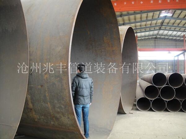 大口径对接焊钢管 厚壁卷焊钢管 及工程中的钢桩和结构用管.纵环缝焊接压力钢管,产品制造形式为:以 1.5 米~ 2 米钢板宽度为基础,制作成 1.5 米 / 节~ 2 米 / 节单节,然后再组焊成所需的每支长度。 材质主要有Q235B Q345B 20# 16锰容,