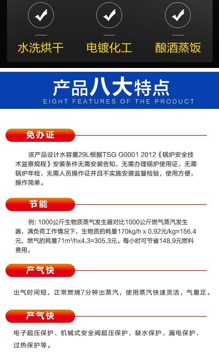 商用1吨生物质蒸汽发生器夹层锅配套高温低压燃煤蒸汽锅炉