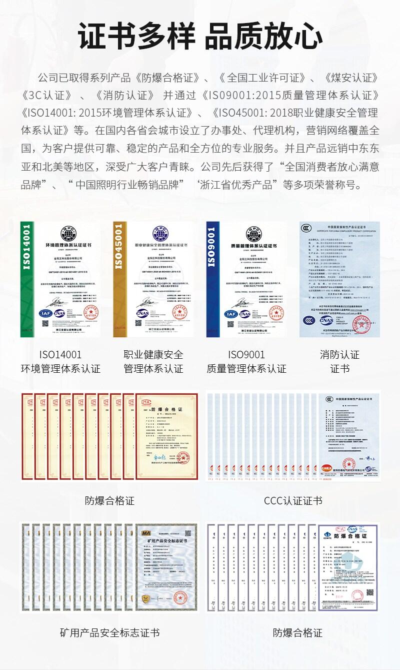 隔爆型防爆等级Exd IMb,可在煤矿易燃易爆场所安全工作。