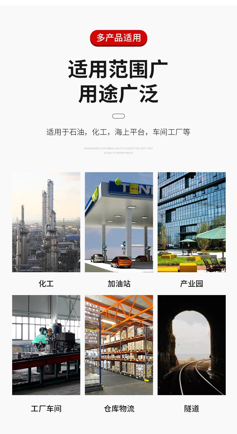适用于有甲烷、煤尘等爆炸性混合物气体的煤矿井下巷道及硐室内做固定式照明。
