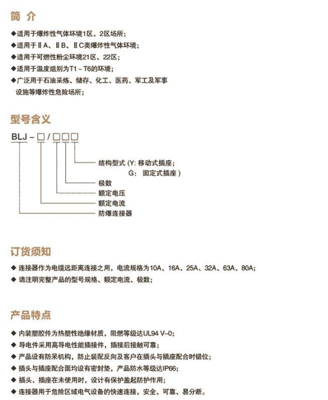 ◆连接器用于危险区域电气设备的快速连接,安全、可靠、易分断。