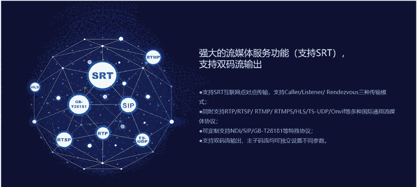 强大的流媒体服务功能(支持SRT),支持双码流输出