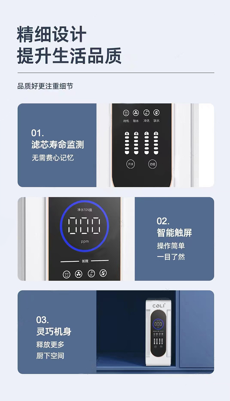 科淋800加仑反渗透净水器 家用厨下直饮机