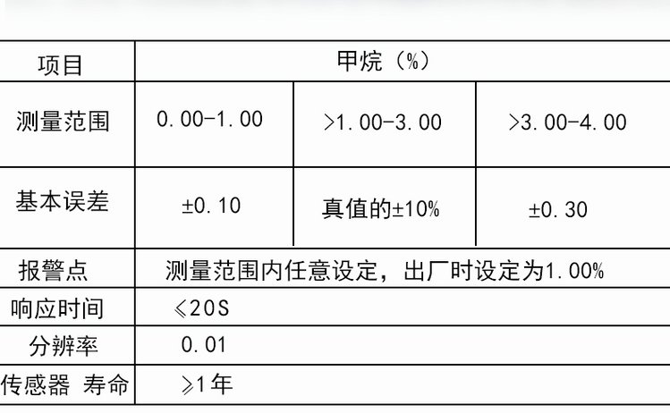 甲烷测量范围 | 0~4 | ||