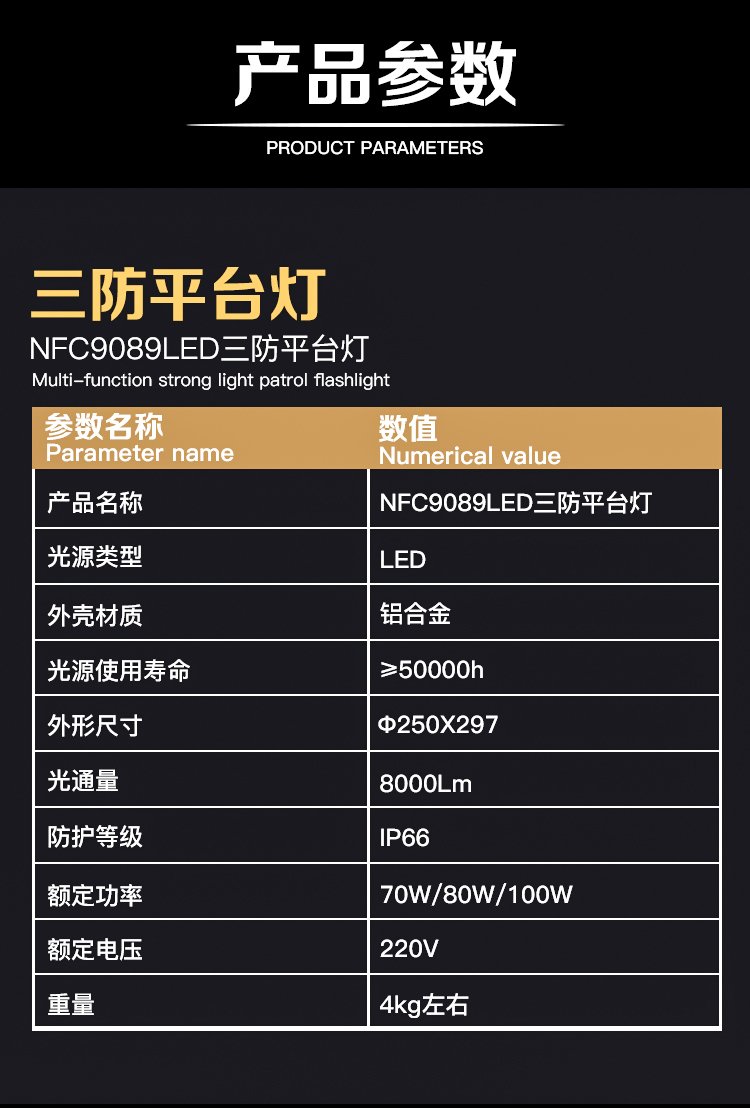 灯具防护属性 | 防水防尘防腐防眩 | ||