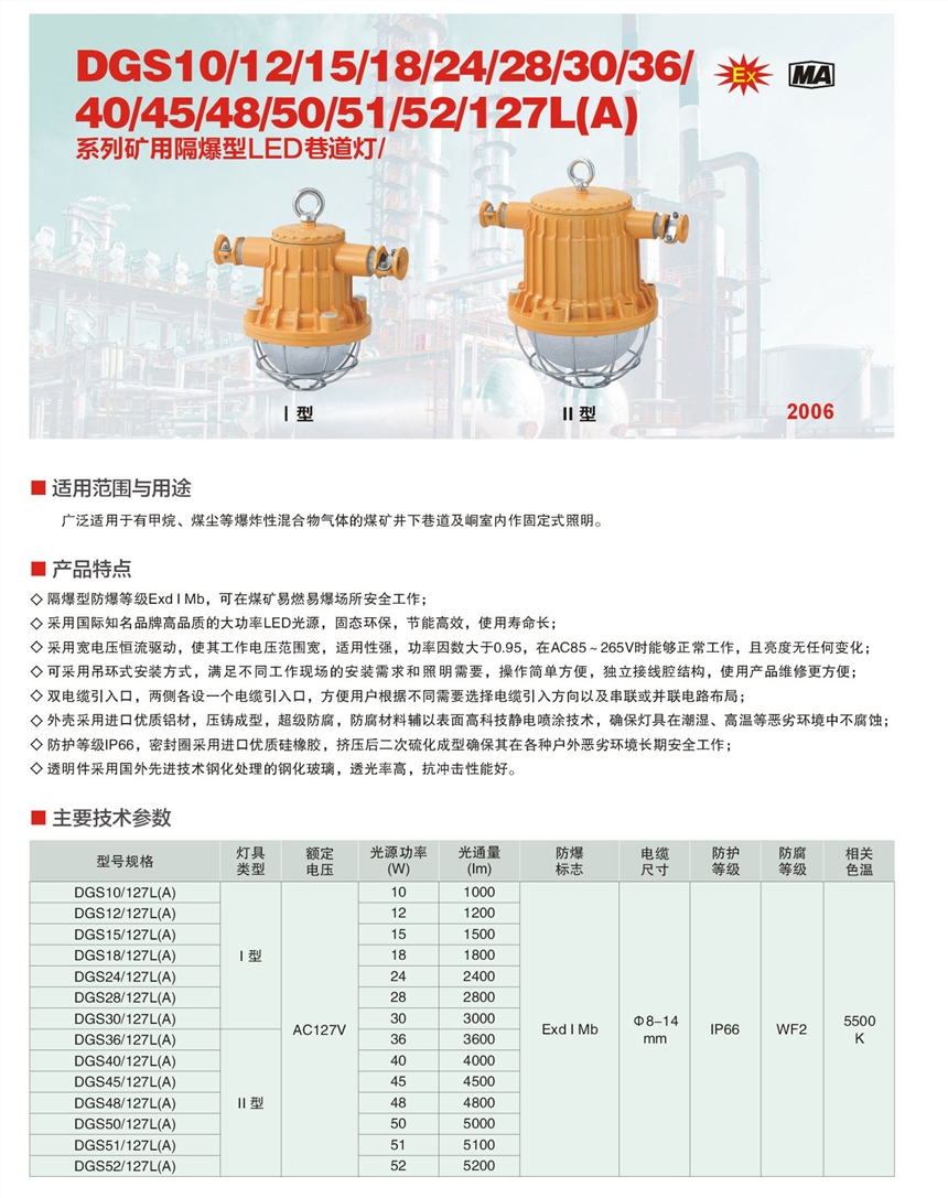 适用场所:适用于厂矿企业、储存、纺织、石油、化工电力等设施等易燃易爆场所作投光或泛光照明。