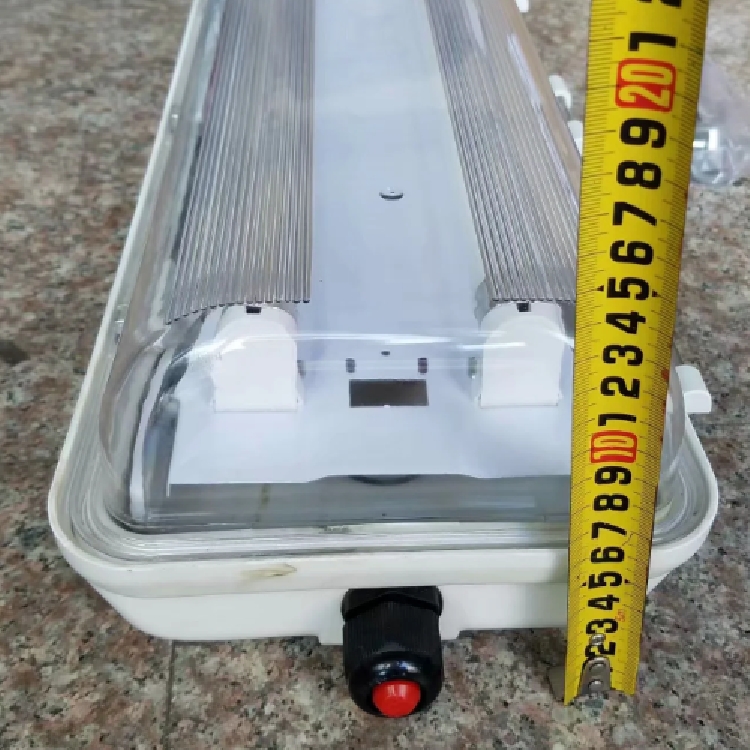BAY52隔爆型应急防爆节能荧光灯壳体采用铝合金精密压铸成型,表面高压静电喷塑。新式结构便于更换灯管,只需拧下端盖,抽出灯管即可进行更换。节能灯管经国家检测中心测试相对于白炽灯节能39.53%。采用新型电子镇流器,装于灯架内,功率因数高达95%以上。透明件采用钢化玻璃,外露紧固件为不锈钢制作。钢管或电缆布线。